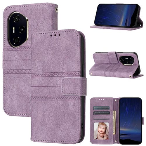 Funda de Cuero con Textura de Piel y Rayas En Relieve para Honor 300 Pro 5G y 300 Ultra 5G (Morado Claro)