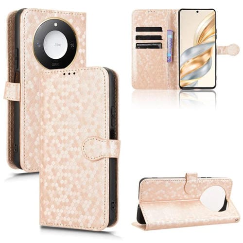 Funda de Cuero con Textura de Puntos Panal para Honor X9C Smart y X60 5G (Dorada)