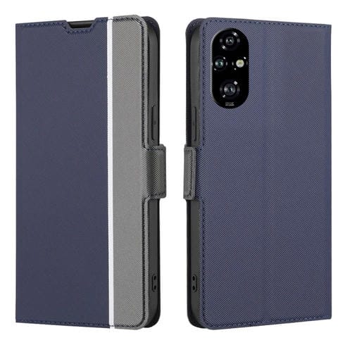 Funda de Cuero con Textura de Sarga y Botones Laterales para Honor 200 Pro 5G (Azul)