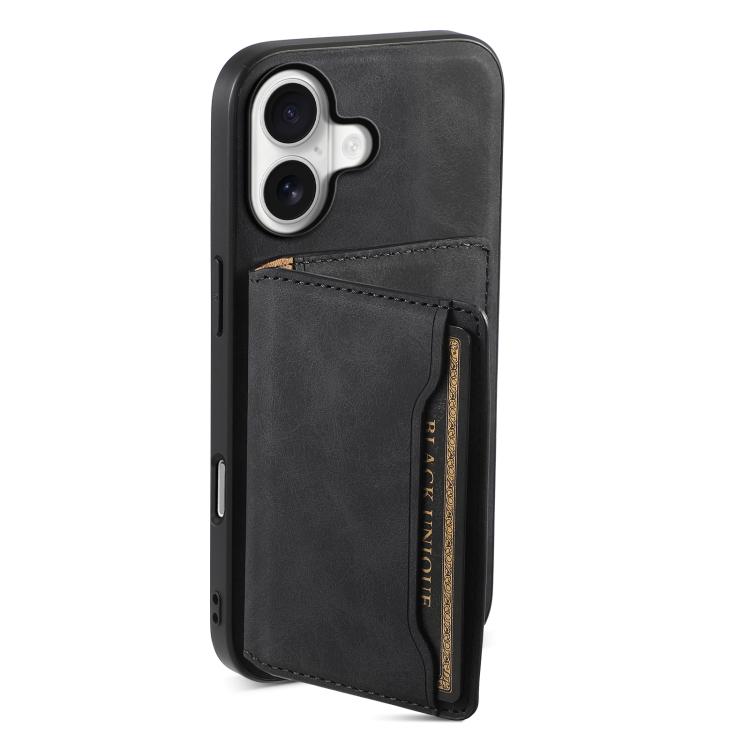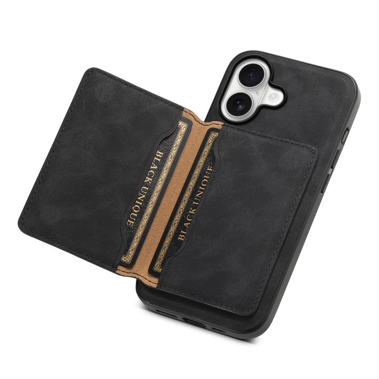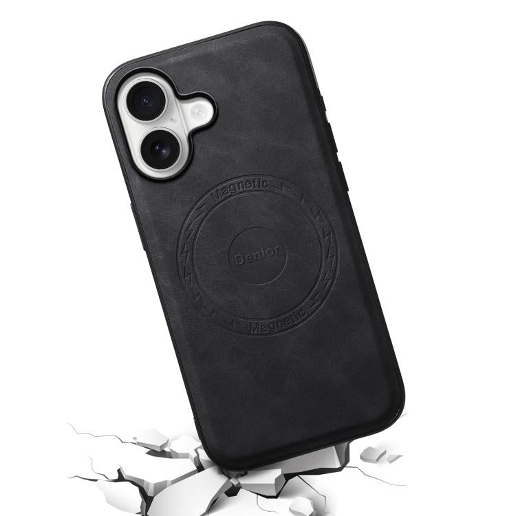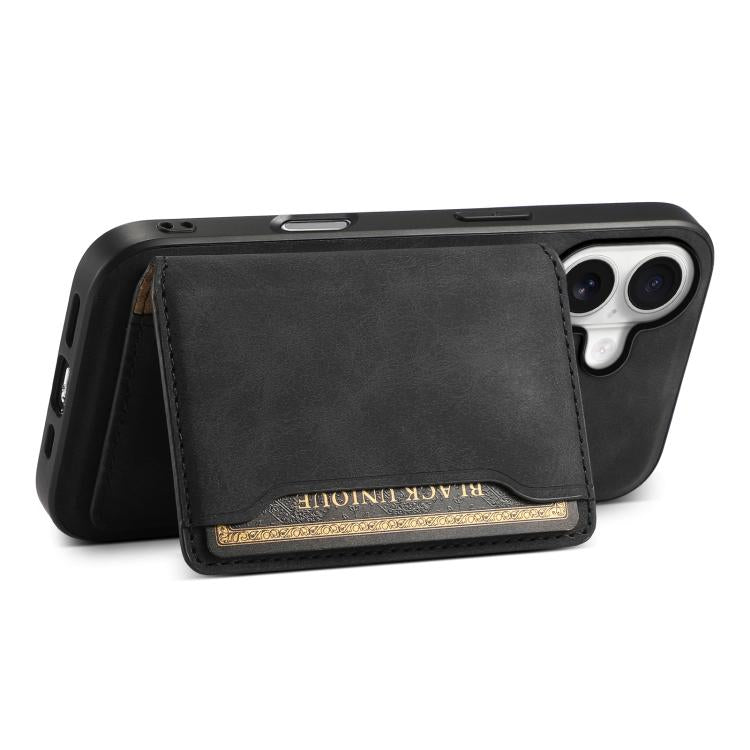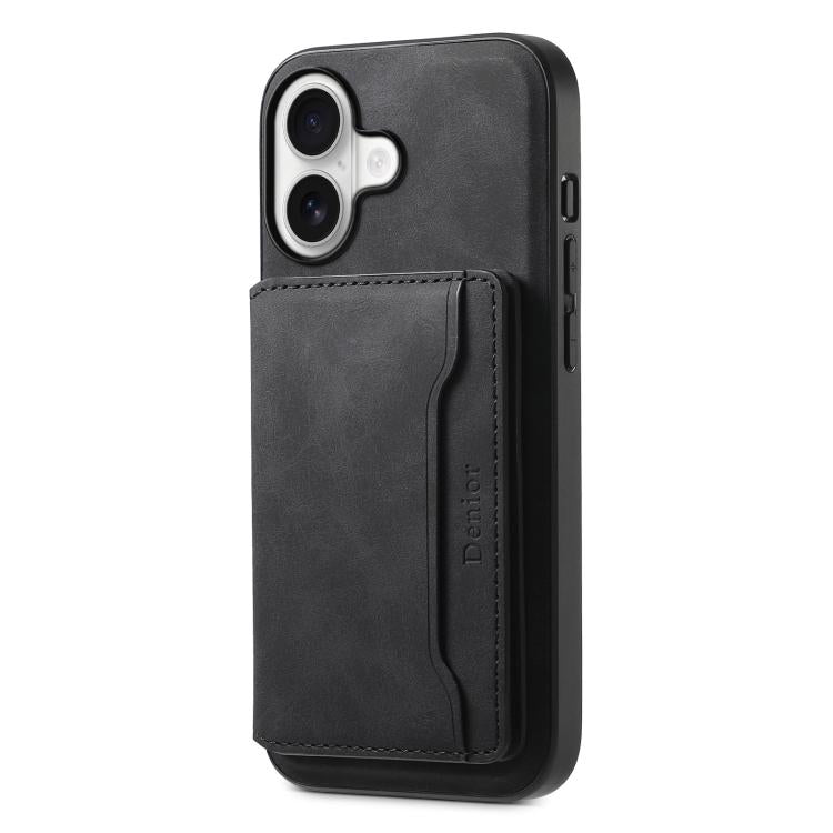 Funda de cuero con textura retro Denior D13 para iPhone 17, con tarjetero MagSafe (negro)