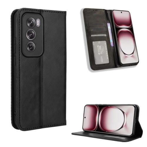 Funda de Cuero con Textura Retro y Hebilla Magnética Global para Oppo Reno12 5G (Negro)