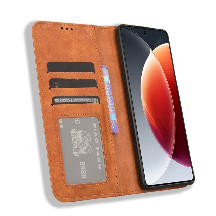 Funda de Cuero para Tecno Camon 30 Pro 5G con Textura Retro y Hebilla Magnética (Marrón)