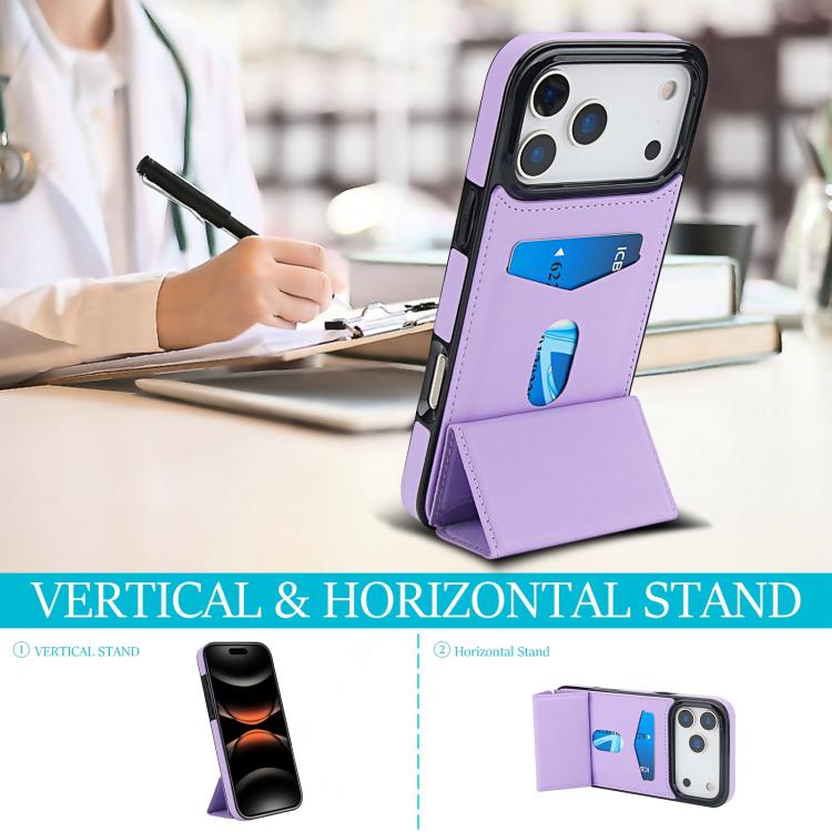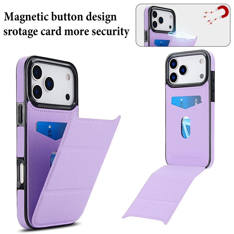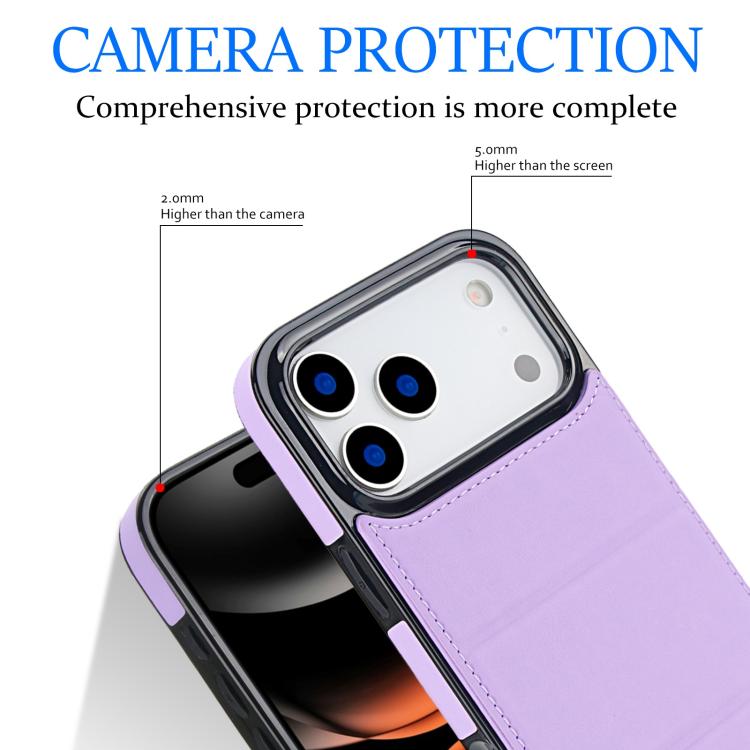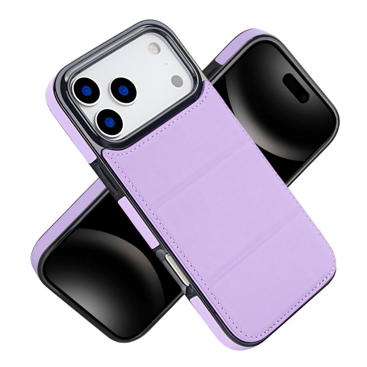 Funda de cuero con tres pliegues y ranura para tarjetas para iPhone 17 Pro Max (morado claro)