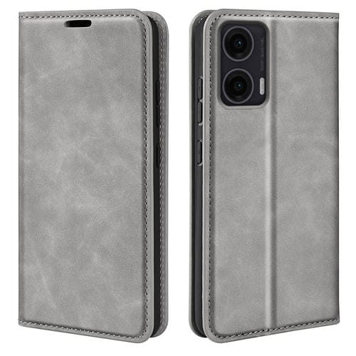 Funda de Cuero con Ventosa Magnética para Motorola Moto G35 5G Retro-Skin (Gris)