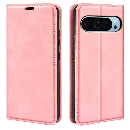 Funda de Cuero con Ventosa Magnética para Google Pixel 9/9 Pro Retro-Skin (Rosa)