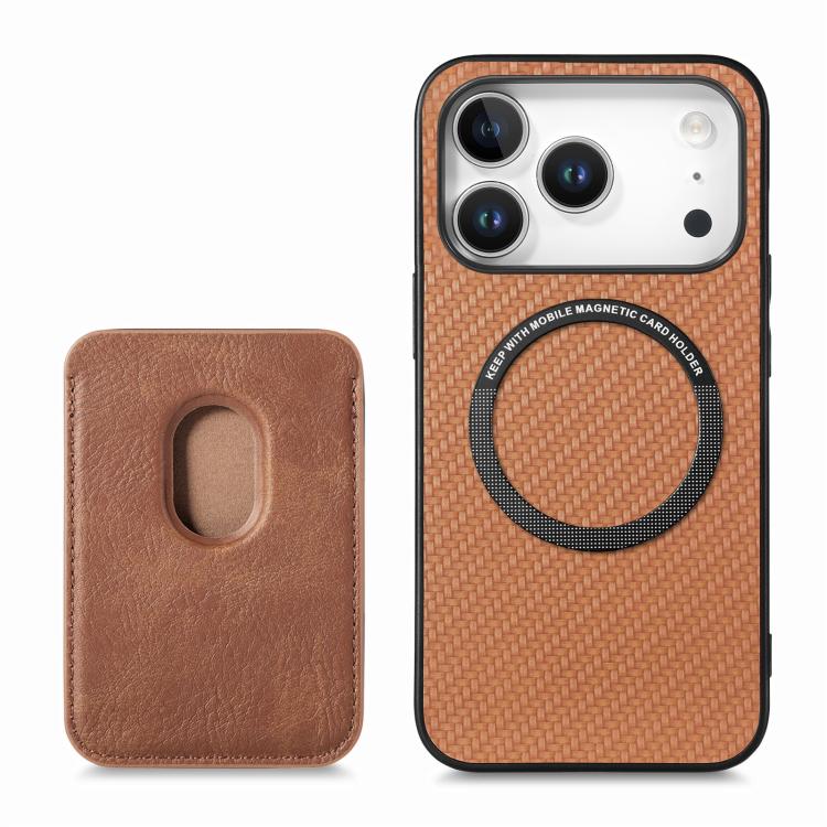 Funda de cuero de fibra de carbono con tarjetero Magsafe para iPhone 17 Pro Max (marrón)