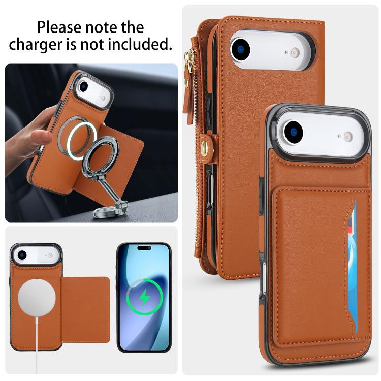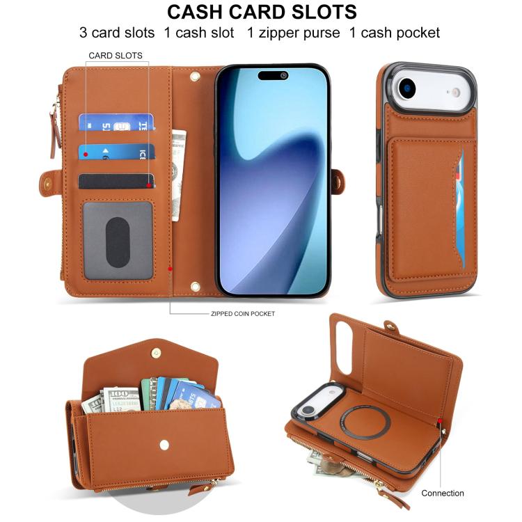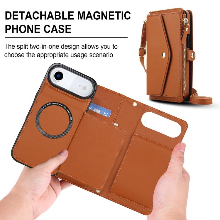 Funda de cuero desmontable con cordón para iPhone Air (marrón)