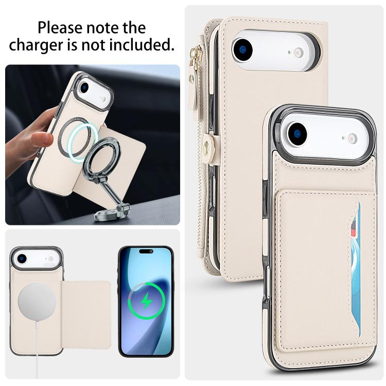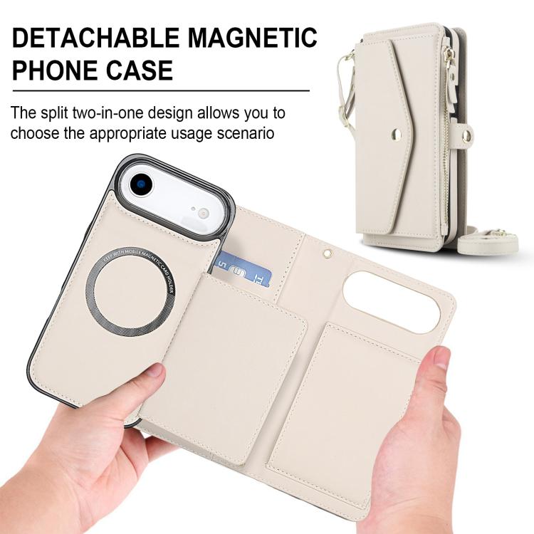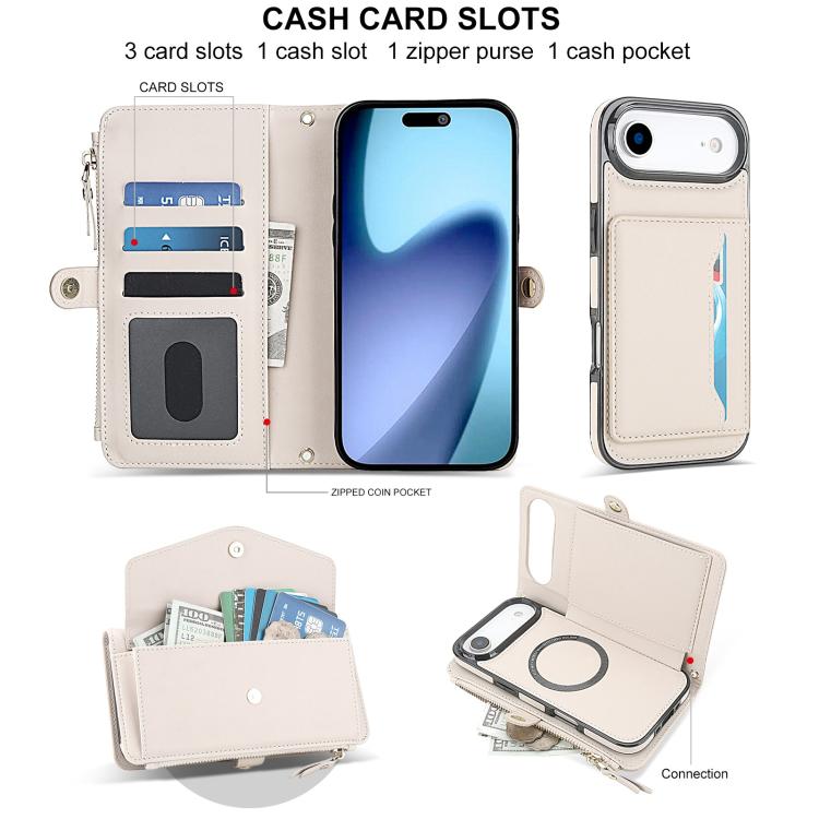 Funda de cuero desmontable con cordón para iPhone Air, multifuncional, tipo billetera (blanca)
