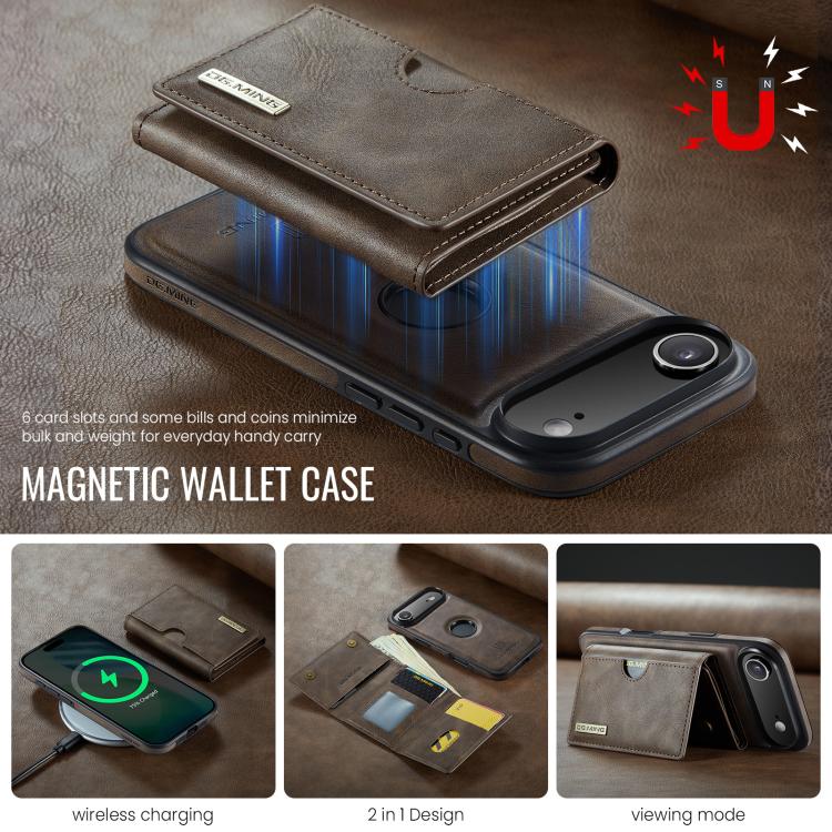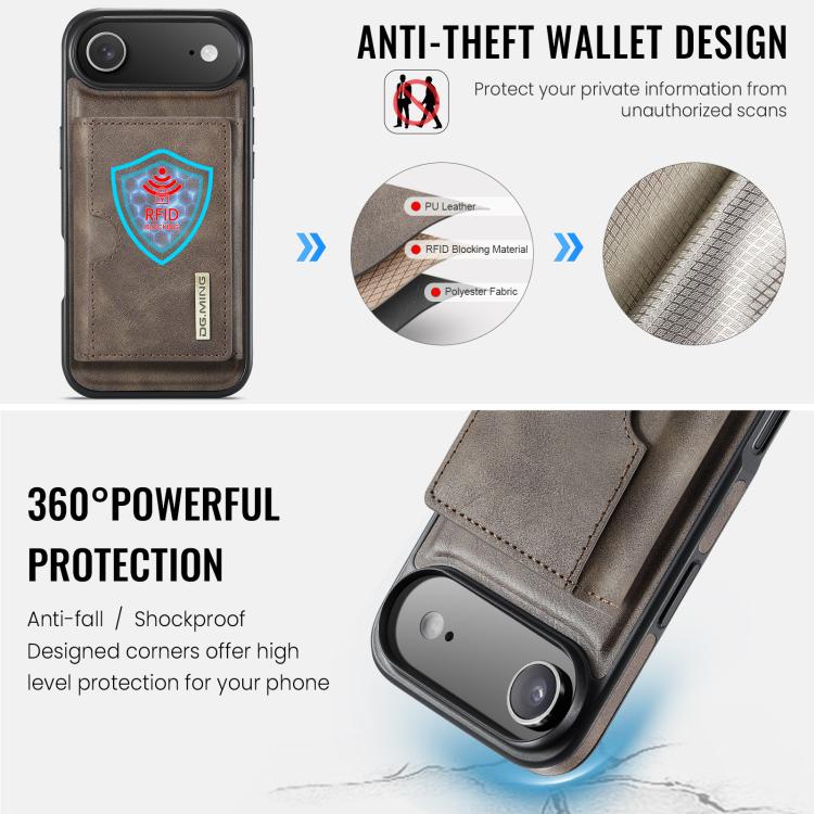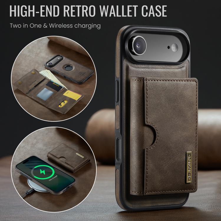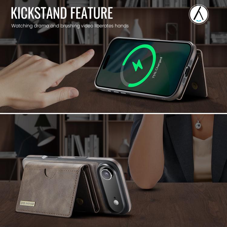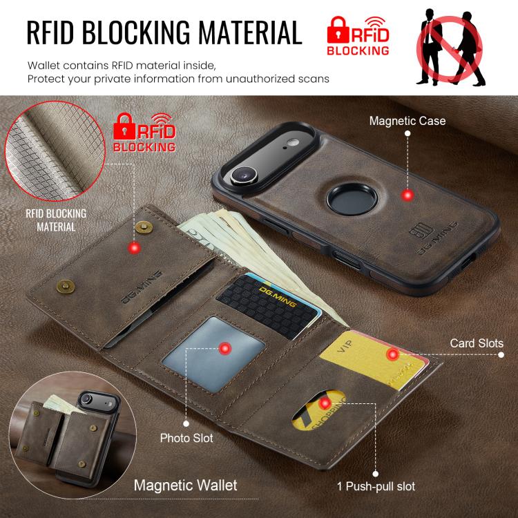 Funda de cuero extraíble para iPhone Air DG.MING M6 Series RFID con tres pliegues para tarjetas (café)