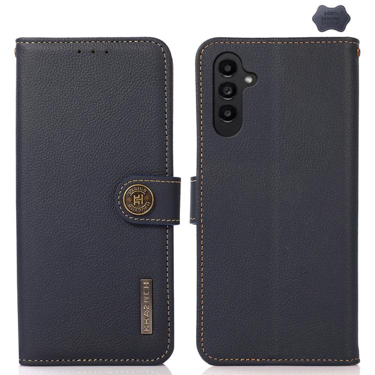 Funda de cuero genuino KHAZNEH Custer RFID para Samsung Galaxy A17 5G (azul)