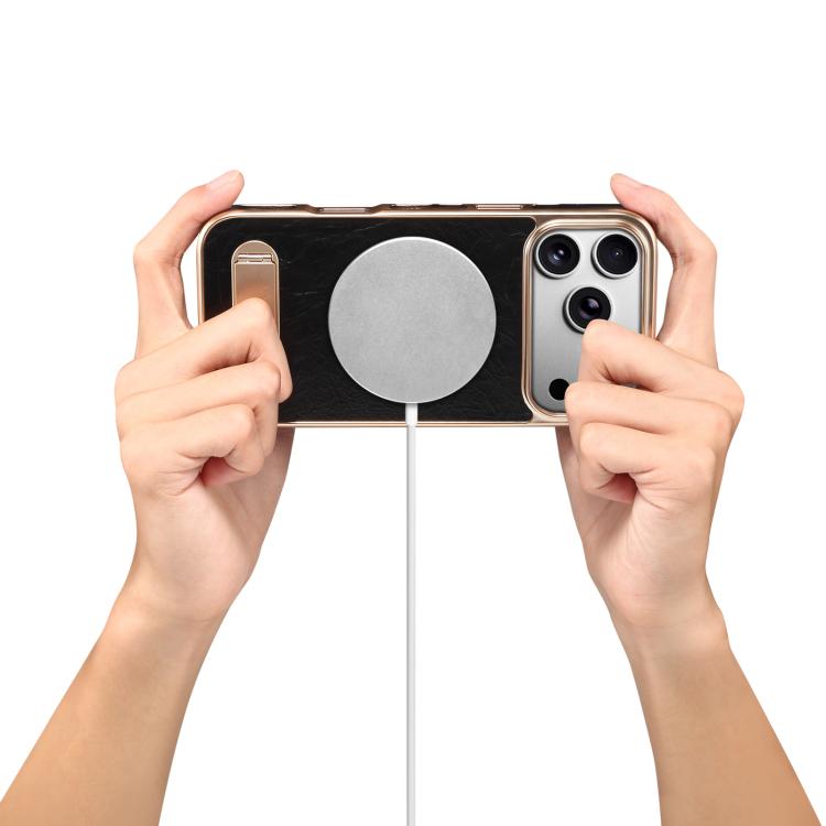 Funda de cuero genuino MagSafe para iPhone 17 Pro Denior A25 con soporte (negro)