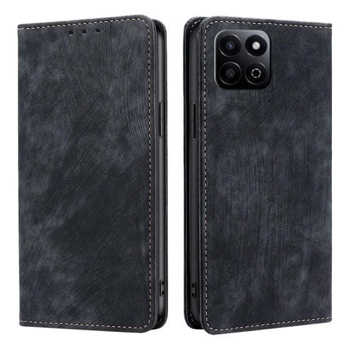 Funda de Cuero Magnética con Cepillo Antirrobo RFID para Honor Play 60 Plus (Negro)