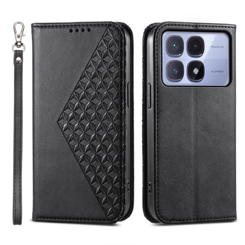 Funda de Cuero Magnética con Textura de Becerro y Cuadrícula Cúbica para Redmi K70 Ultra (Negro)