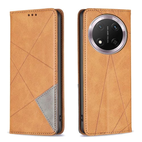 Funda de Cuero Magnética con Textura de Rombos para Honor X9C 5G (Amarillo)