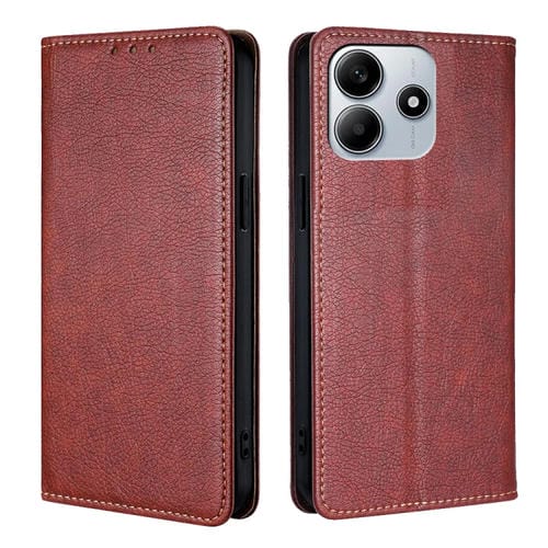 Funda de Cuero Magnético con Acabado Brillante y Aceite para Redmi Note 14 5G (Marrón)