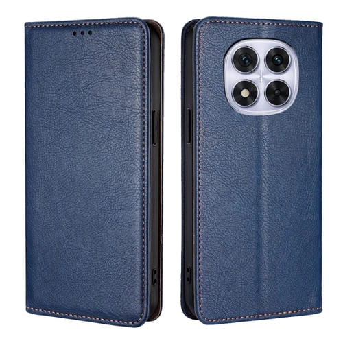 Funda de Cuero Magnético con Acabado Brillante y Aceite Sólido para Redmi Note 14 Pro 5G (Azul)
