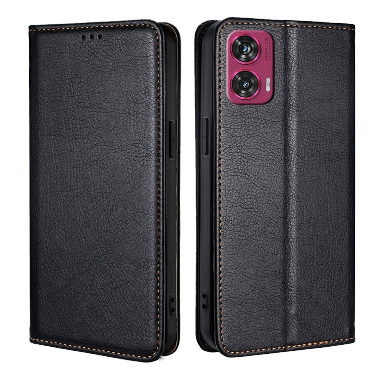 Funda de Cuero Magnética para Motorola Edge 50 Fusion 5G con Acabado Brillante y Aceite Sólido (Negro)