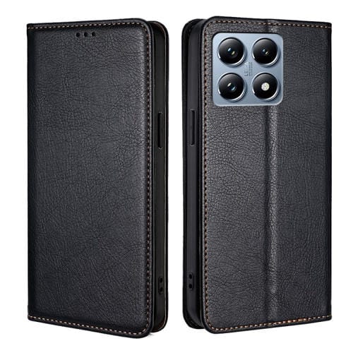Funda de Cuero Magnética para Teléfono Xiaomi 14T Pro 5G con Acabado Brillante y Color Sólido (Negro)
