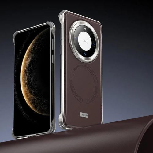 Funda de Cuero Magsafe para Huawei Mate 60 Pro sin Marco de Metal (Marrón)