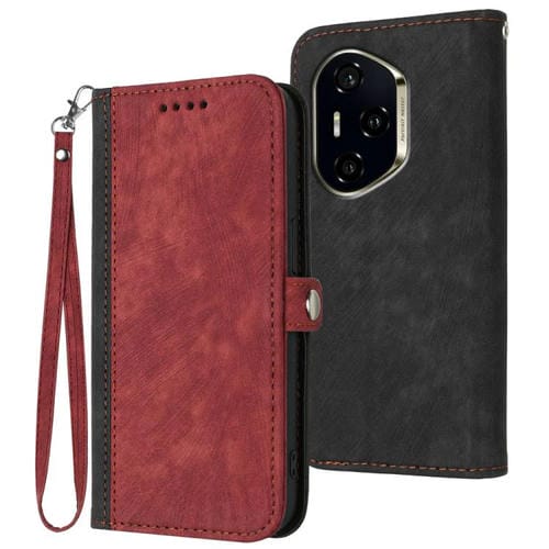 Funda de Cuero para Honor 300 Pro y 300 Ultra con Correa de Mano Plegable y Hebilla Lateral Doble (Rojo)