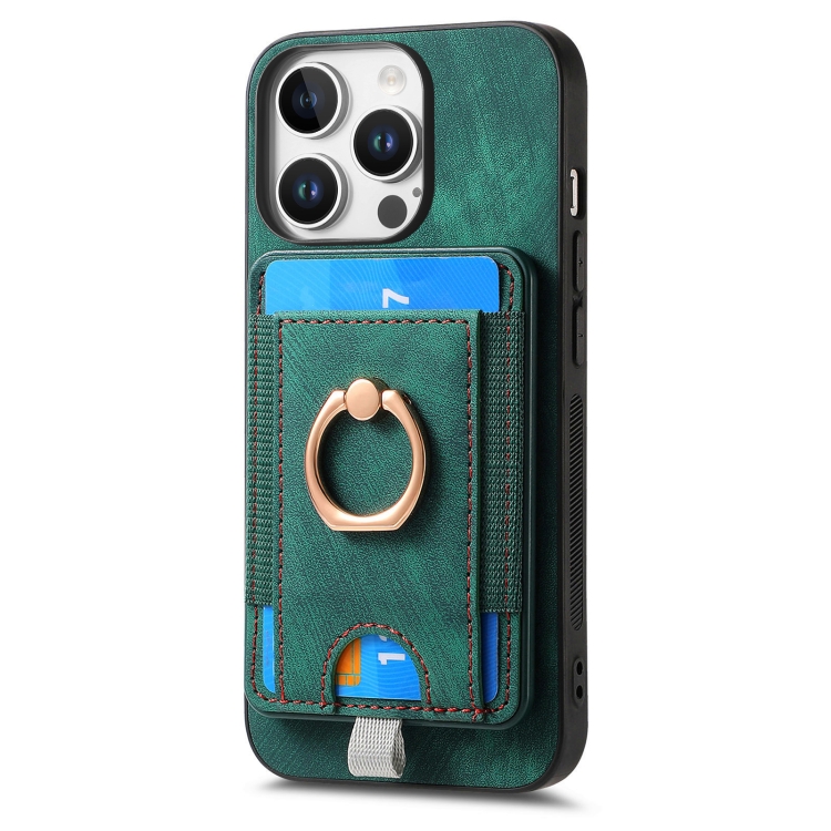 Funda de Cuero para Teléfono iPhone 16 Pro Max TaRJetero Magnético Divisible Retro (Verde)