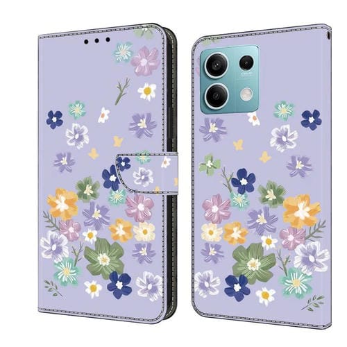Funda de Cuero Pintada a Mano para Redmi Note 13 5G (Floral Morado)