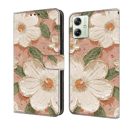 Funda de Cuero Pintada a Mano para Motorola Moto G54 (Girasol)