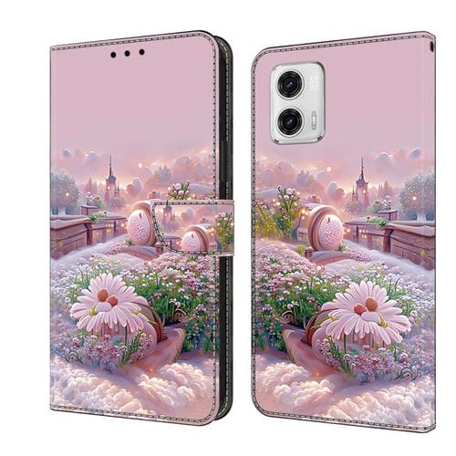Funda de Cuero Pintada a Mano para Motorola Moto G73 (Jardín)