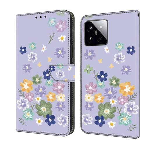 Funda De Cuero Pintada A Mano Para Teléfono Xiaomi 14 (Floral Morado)