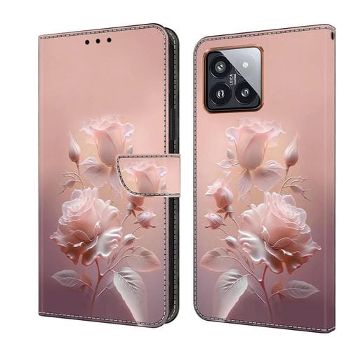 Funda De Cuero Pintada A Mano Para Teléfono Xiaomi 14 Pro (Flores De Cerámica)