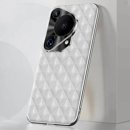 - 1x Funda de Cuero PU con Textura Rómbica y Borde Plateado para Huawei Pura 70 Ultra (Blanca)