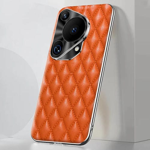 • 1x Funda de Cuero PU con Textura Rómbica y Borde Plateado para Huawei Pura 70 Ultra (Naranja)