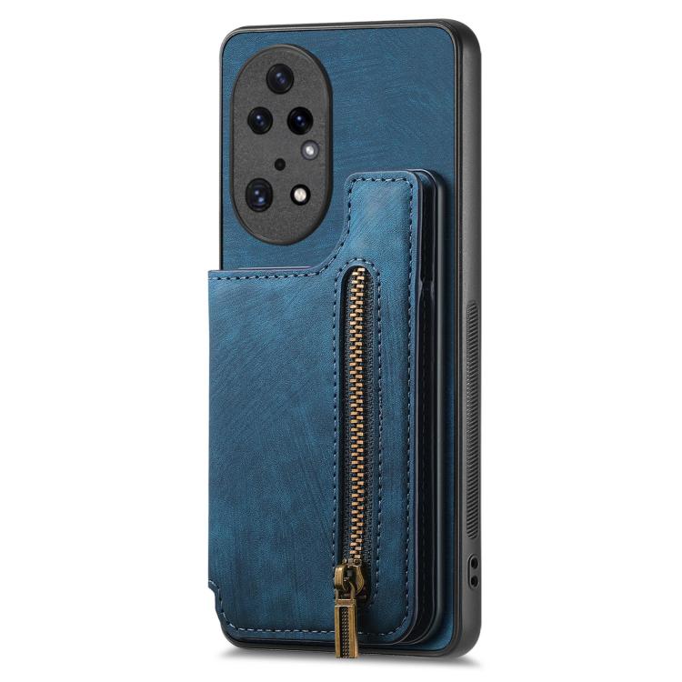 Funda de Cuero Retro con Cremallera para Huawei P50 Pro (Azul)