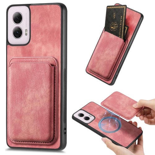 Funda de Cuero Retro con Tarjetero y Cierre Magnético para Motorola Moto G Power 5G (2024) (Rosa)