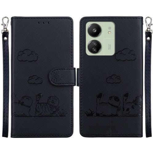Funda de Cuero Rfid con Diseño de Gatos para Redmi 13C 4G/5G (Negra)