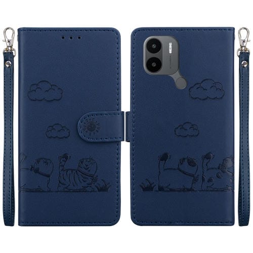 Funda de Cuero Rfid con Diseño de Gatos Lindos para Redmi A1+ 4G Global (Azul)