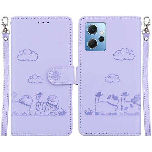 Funda de Cuero Rfid con Diseño de Gatos Lindos para Redmi Note 12 4G (Morado)
