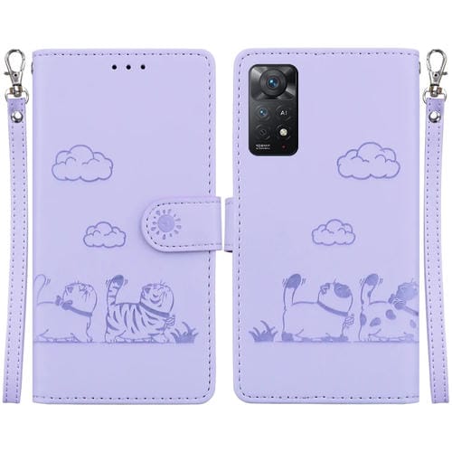 Funda de Cuero Rfid con Diseño de Gatos para Redmi Note 12 Pro 4G (Morada)