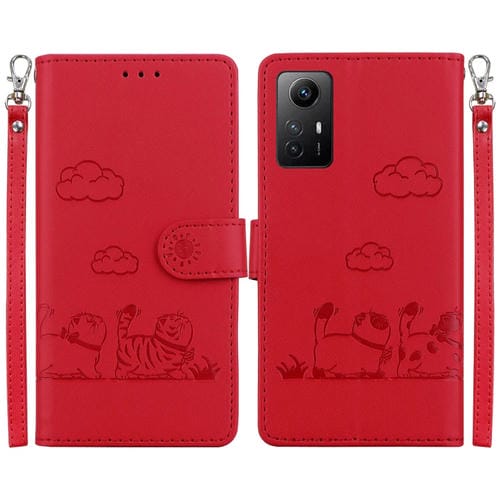 Funda de Cuero Rfid con Diseño de Gatos para Redmi Note 12S (Roja)
