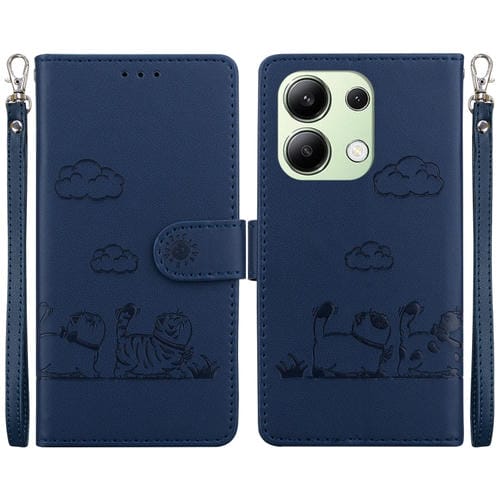 Funda de Cuero Rfid con Diseño de Gatos Lindos para Redmi Note 13 4G (Azul)