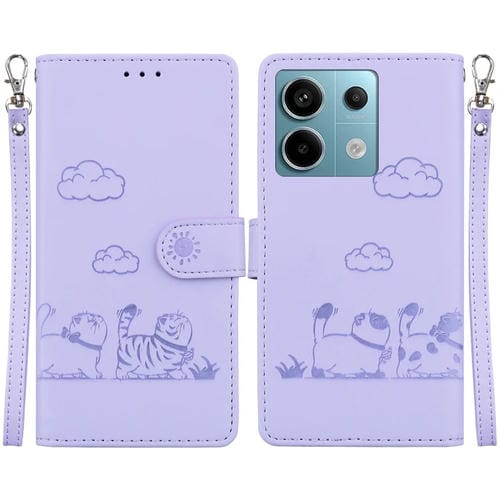 Funda de Cuero Rfid con Diseño de Gatos para Redmi Note 13 Pro 5G (Morada)