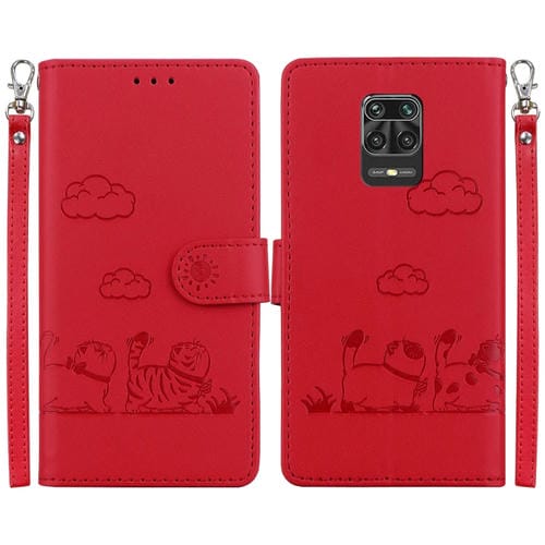 Funda de Cuero Rfid con Diseño de Gatos Lindos para Redmi Note 9 Pro (Roja)