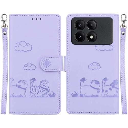 Funda de Cuero Rfid con Diseño de Gatos para Xiaomi Poco X6 Pro (Morada)
