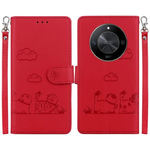 Funda de Cuero Rfid para Honor X9B y Magic6 Lite con Diseño de Gatos (Roja)