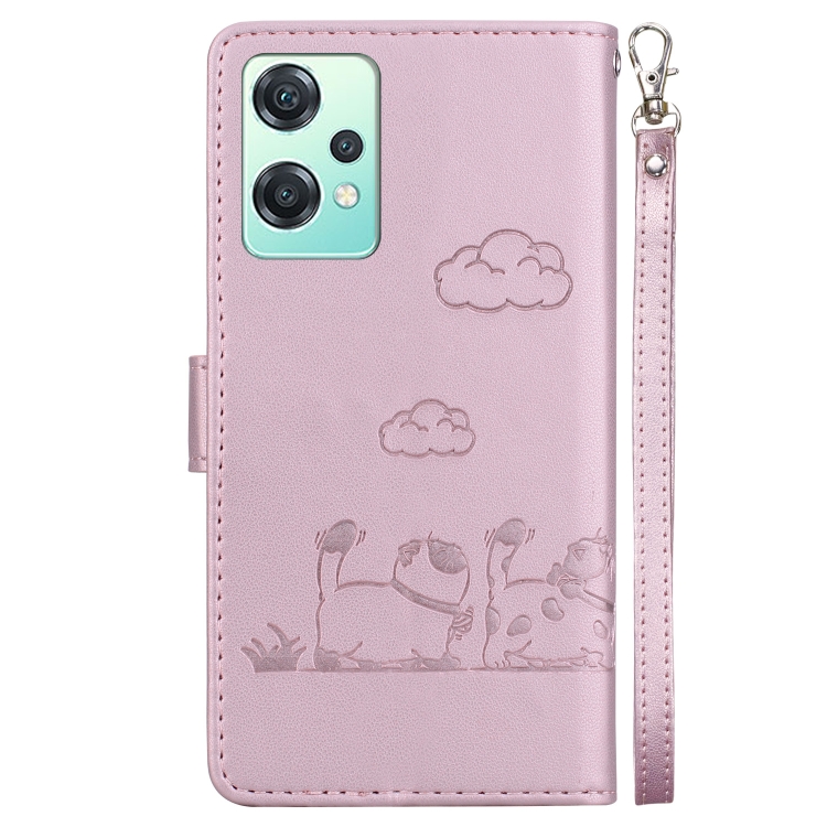 Funda de Cuero Rfid para OnePlus Nord Ce 2 Lite 5G con Diseño de Gatos (Oro Rosa)