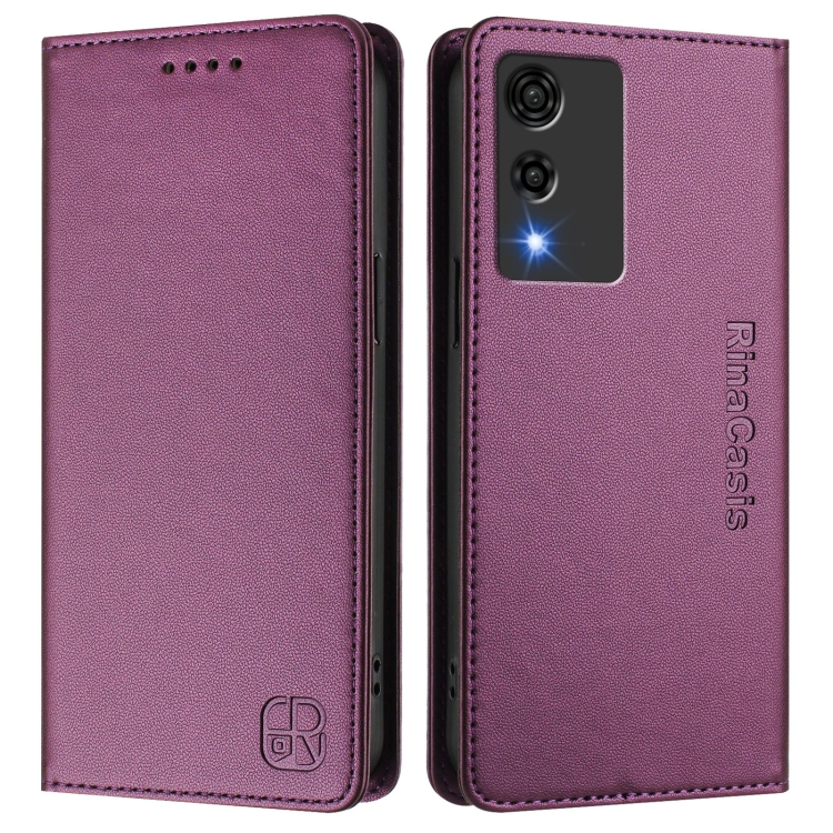 Funda de Cuero Rfid para Cubot A10 Rc01 con Doble Pliegue y Succión Magnética (Violeta)