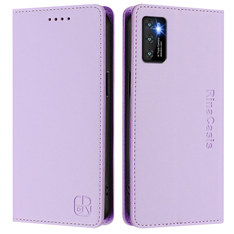 Funda de Cuero Rfid Cubot P50 Rc01 Doble Pliegue Succión Magnética (Morado Claro)