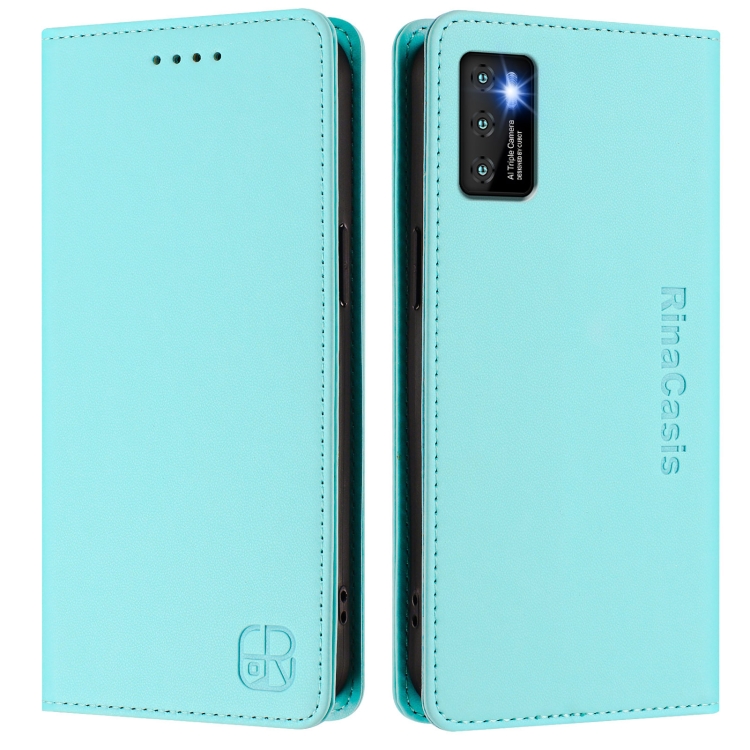 Funda de Cuero Rfid para Cubot P50 Rc01 con Doble Pliegue y Succión Magnética (Verde Menta)