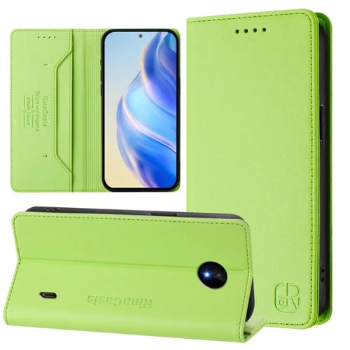 Funda de Cuero Rfid con Doble Pliegue y Succión Magnética para Nokia C10/C20 Rc01 (Verde Hierba)