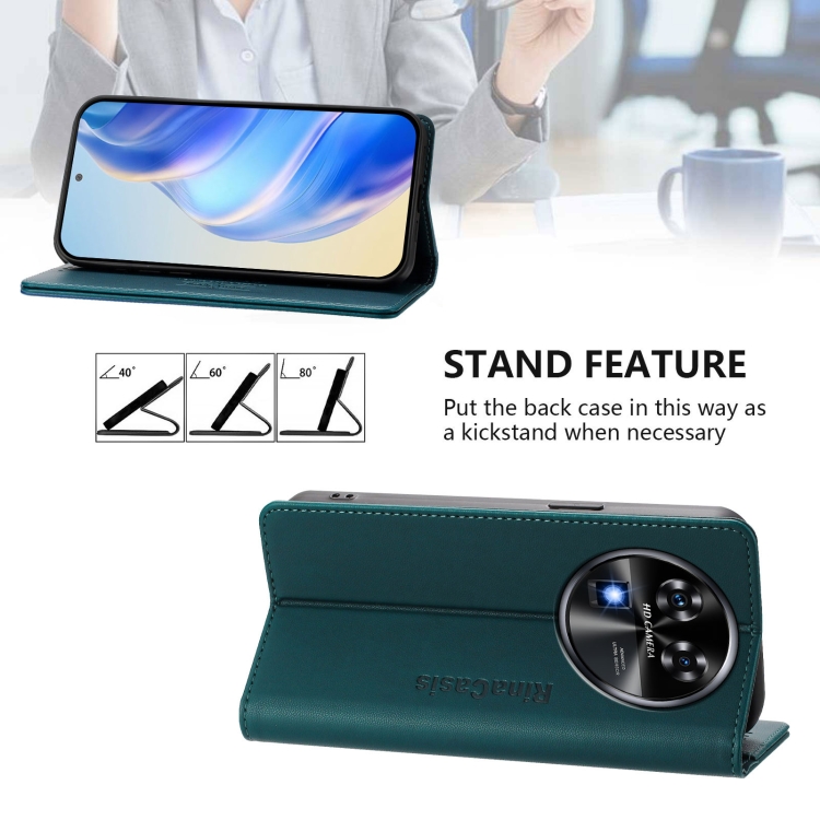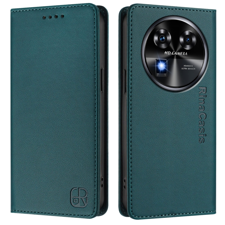 Funda de Cuero Rfid con Doble Pliegue y Succión Magnética para Oukitel C37 Rc01 (Verde Oscuro)